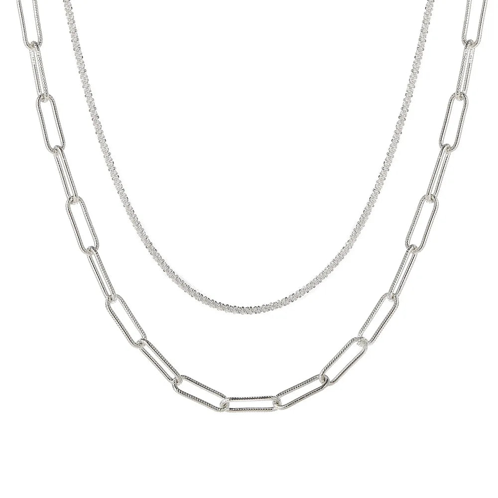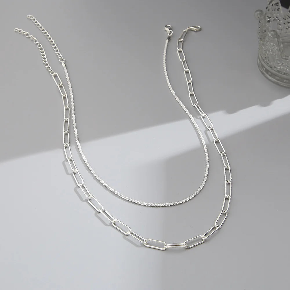 1PCS Retro Niche Accessory Plain Chain Silver Necklace, Simple Temperament, Layered Double Layered Collarbone Chain, Plain Chain 数量