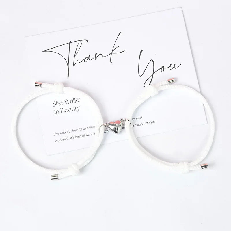 2 Pice Color Black White Hand Rope Love Magnetic Couple Good Friend Good Brother Party Student Travel Fashion Elegant Silver Mul