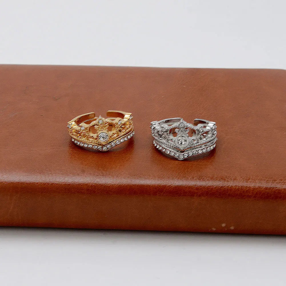 2PCS Crystal Crown Adjustable Ring Irregular Geometry Vintage Rings Set for Women Girls New Fashion Jewelry
