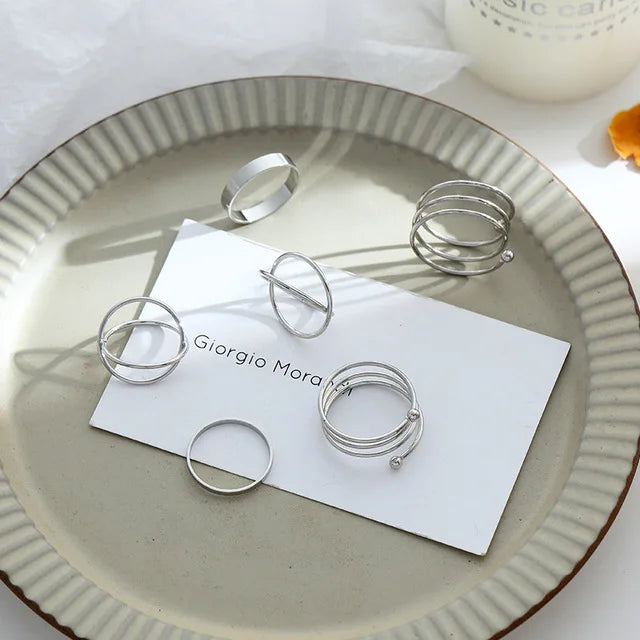 6pcs Golden Silver Color Cross Rings Set For Women Simple Wide Chain Finger Tail Rings Open Adjustable Joint Jewelry Gifts Female