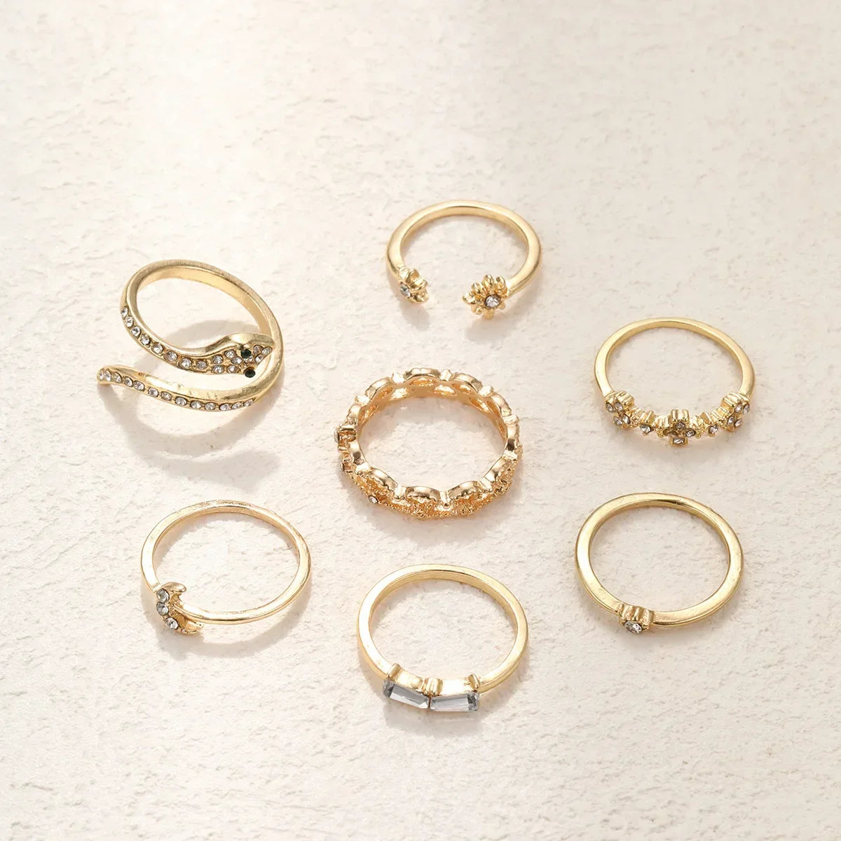 Boho Gold Color Snake Rings For Women Girls Vintage Zircon Heart Star Moon Ring Set Personality Open Rings Jewelry Party Gifts