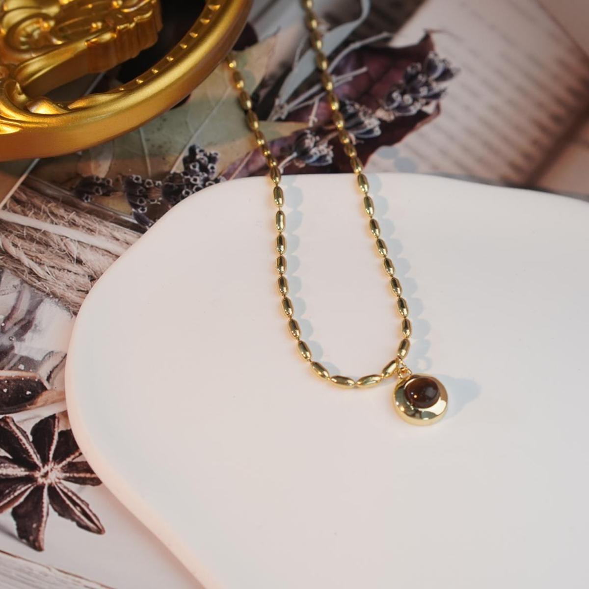 • Chain Design: Uniform oval copper beads with satin gold finish