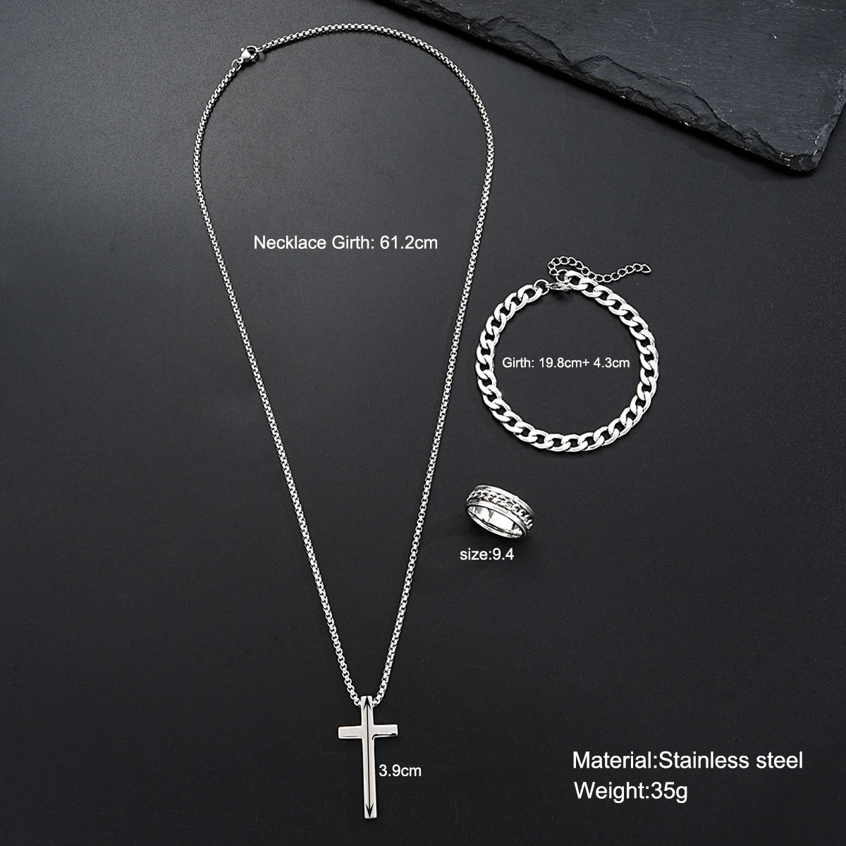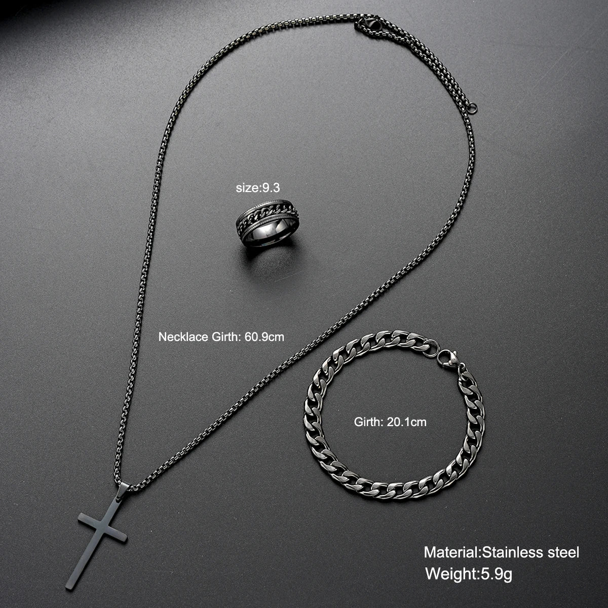9619724861720-fashion-punk-black-color-cross-pendant-necklace-bracelet-ring-set-for-men-boys-hip-hop-stainless-steel-jewelry-set-party-gifts