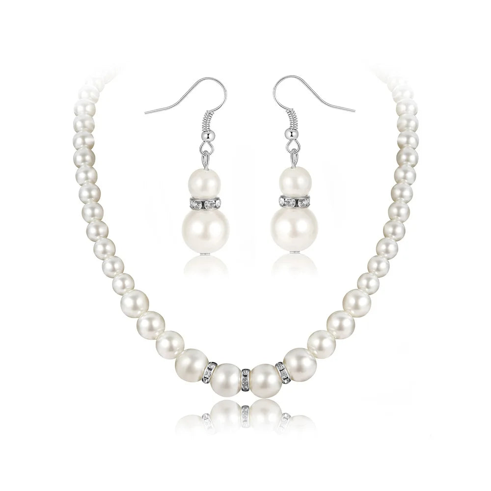 Fashion Woman Bride Wedding Pearl Jewelry Set for Women Rhinestone Faux Pearl Necklace Bracelet Earring Wedding Party Jewelry