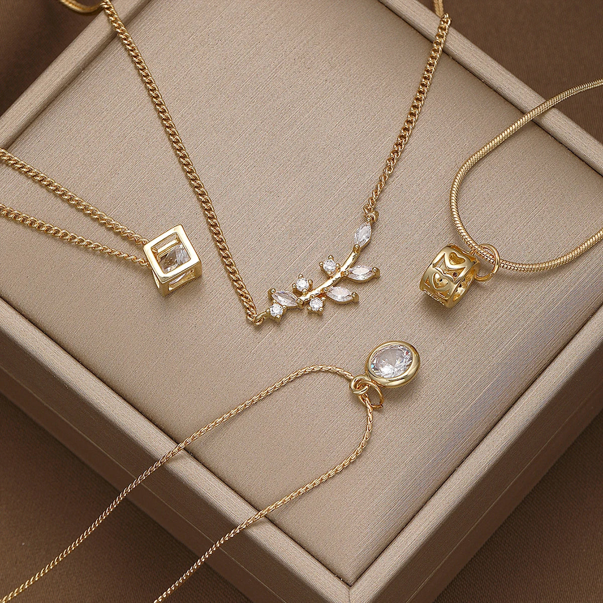 Geometric Crystal Pendant Necklaces Fashion Gold Color Ziron Clavicular Chains Luxury Adjustable Leaves Chokers Jewelry New 数量