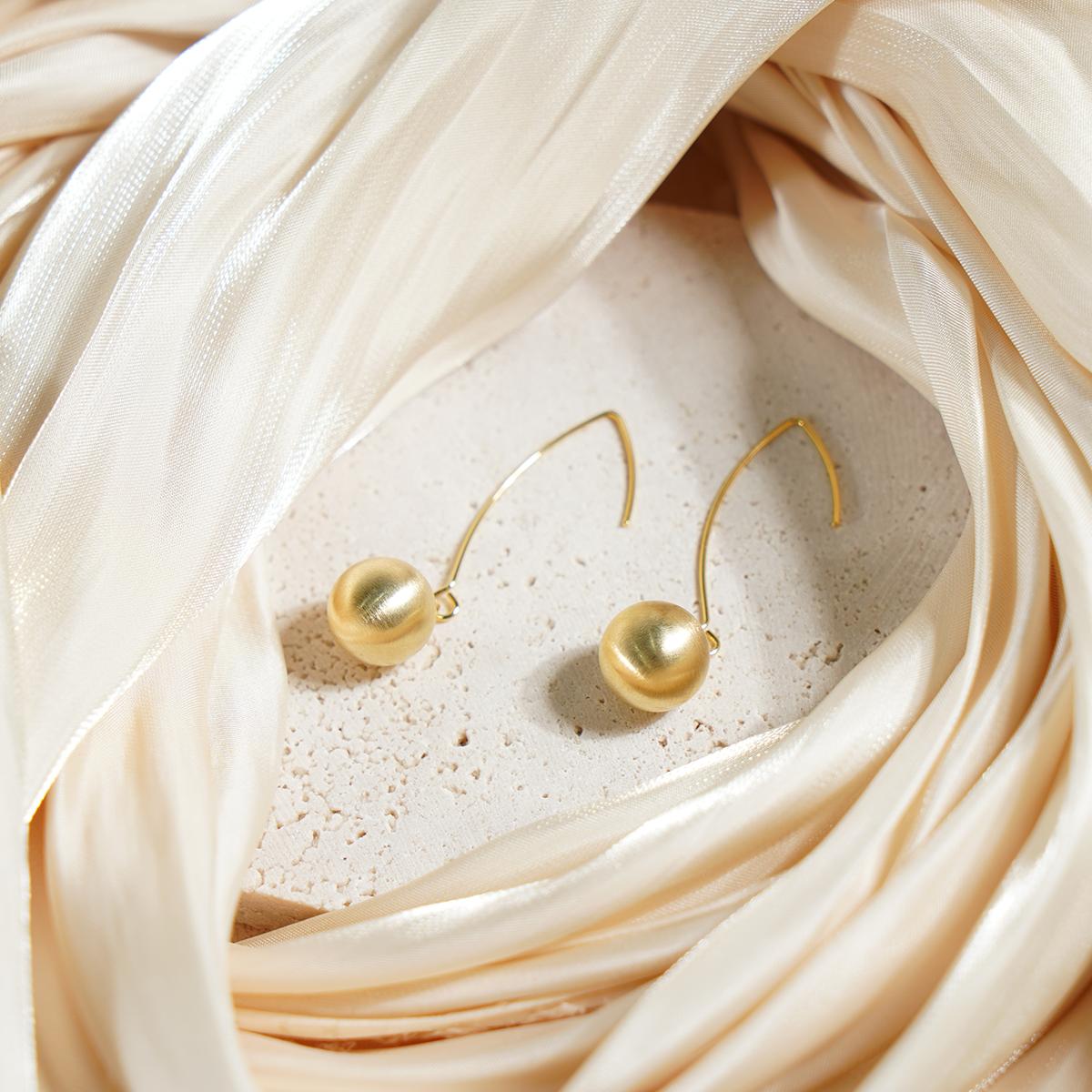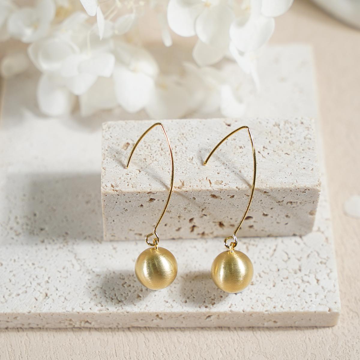 Design & Materials: These elegant drop earrings feature a sophisticated textured gold-tone copper ball suspended from a sleek stainless steel hook. The matte finish with subtle brushing creates a modern aesthetic, while the perfect spherical shape adds a touch of geometric elegance. The minimalist design showcases exceptional craftsmanship in every detail.