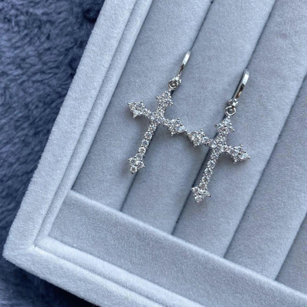 Korean Fashion Zircon Crystal Cross Women Drop Earrings for Gothic Punk Hip Hop Female Piercing Dangle Earrings Party Jewelry