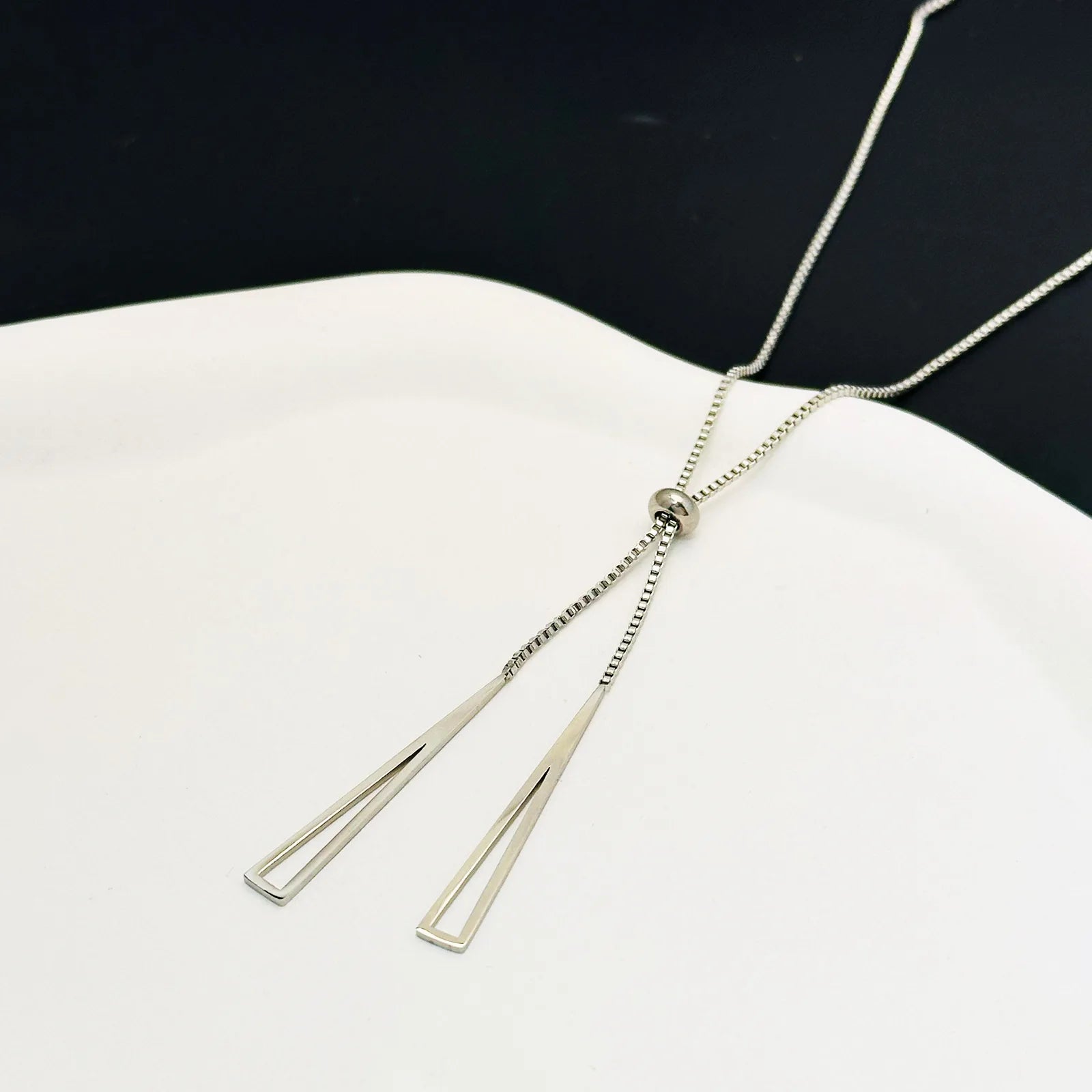 New Korea Trendy Geometric Triangle Pendant Necklace for Women Charm Stainless Steel Adjustable Chokers Jewelry Gift