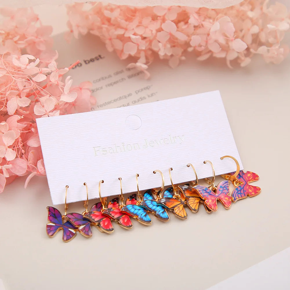 New Trendy Gold Color Hoop Earrings Set Drop Colorful Butterfly For Women Girl Gift Fashion Jewelry Dropship Wholesale 数量