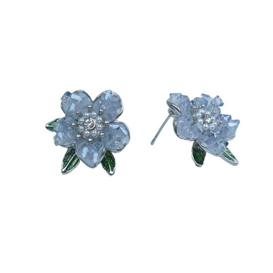 【Earrings】Crystal Petals Clip/Stud Earrings with Enamel Green Leaves, Pearl & Zircon Accents, Sweet&Romantic for Ladies