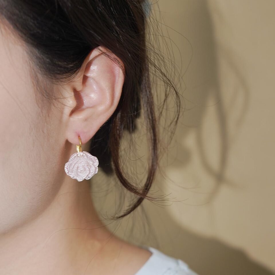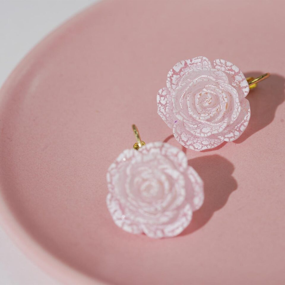 【Hook Earrings】Rose Earrings with Crackle Texture, Vintage Floral Design for Girls